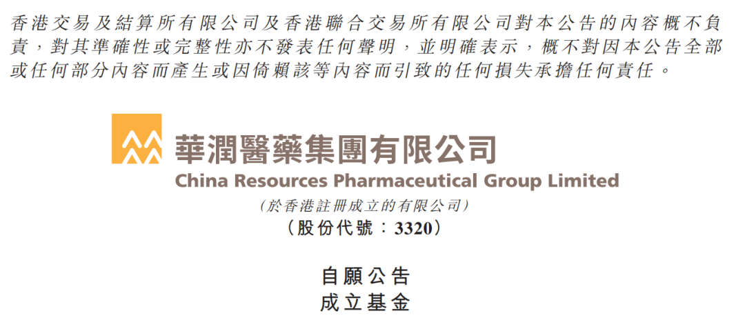 近日,华润医药集团股份有限公司(以下简称“华润医药”)发布公告,宣布旗下多家上市公司将与上海复星医药产业发展有限公司、成都相关企业共同设立华润医药(成都)创新投资基金合伙企业(有限合伙)。