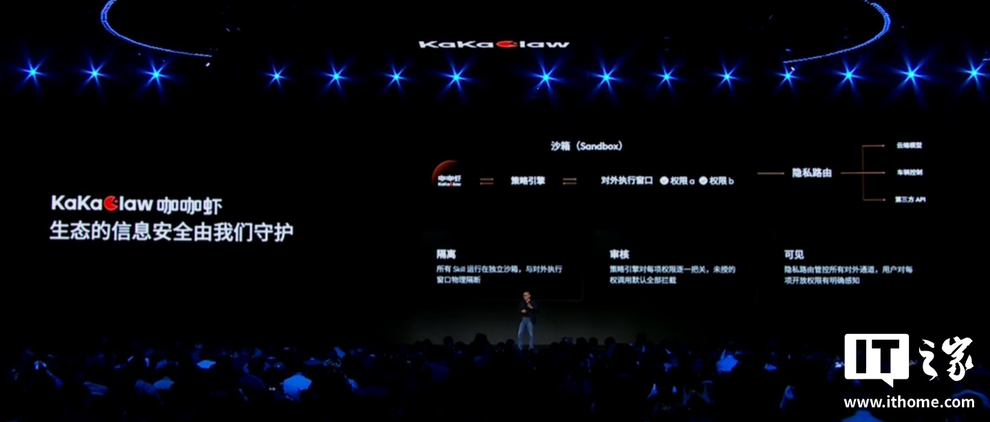 安全方面,咖咖虾采用沙箱机制,未授权调用默认全部拦截,隐私数据端侧部署。